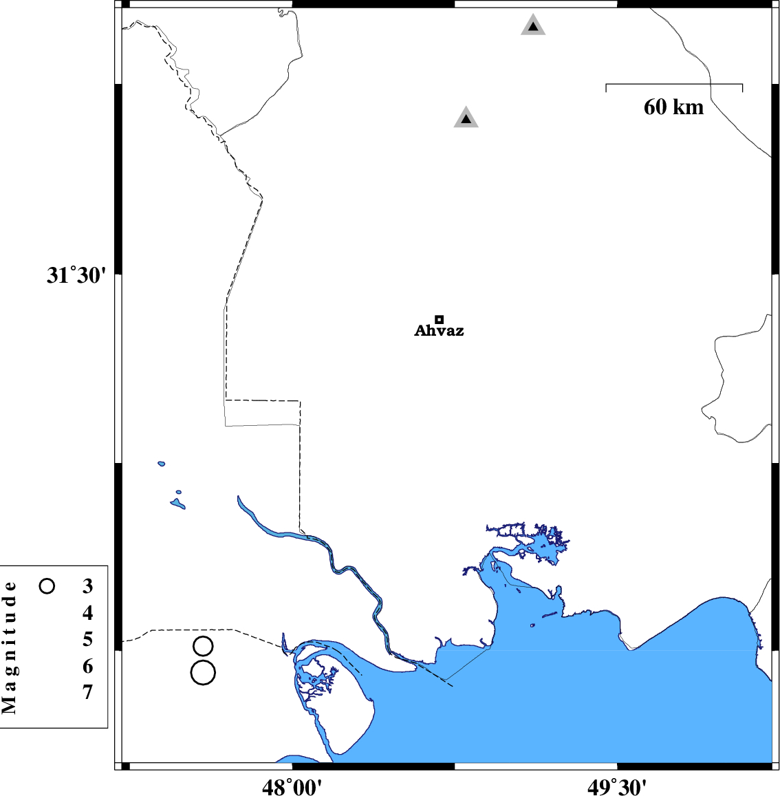 | 2022/09/11 | 07:35:25.2 | 12:05:25.2 | 31.013 | 48.592 | 12 | ML4 | Khoozestan Province, 35 km South of Ahvaz |