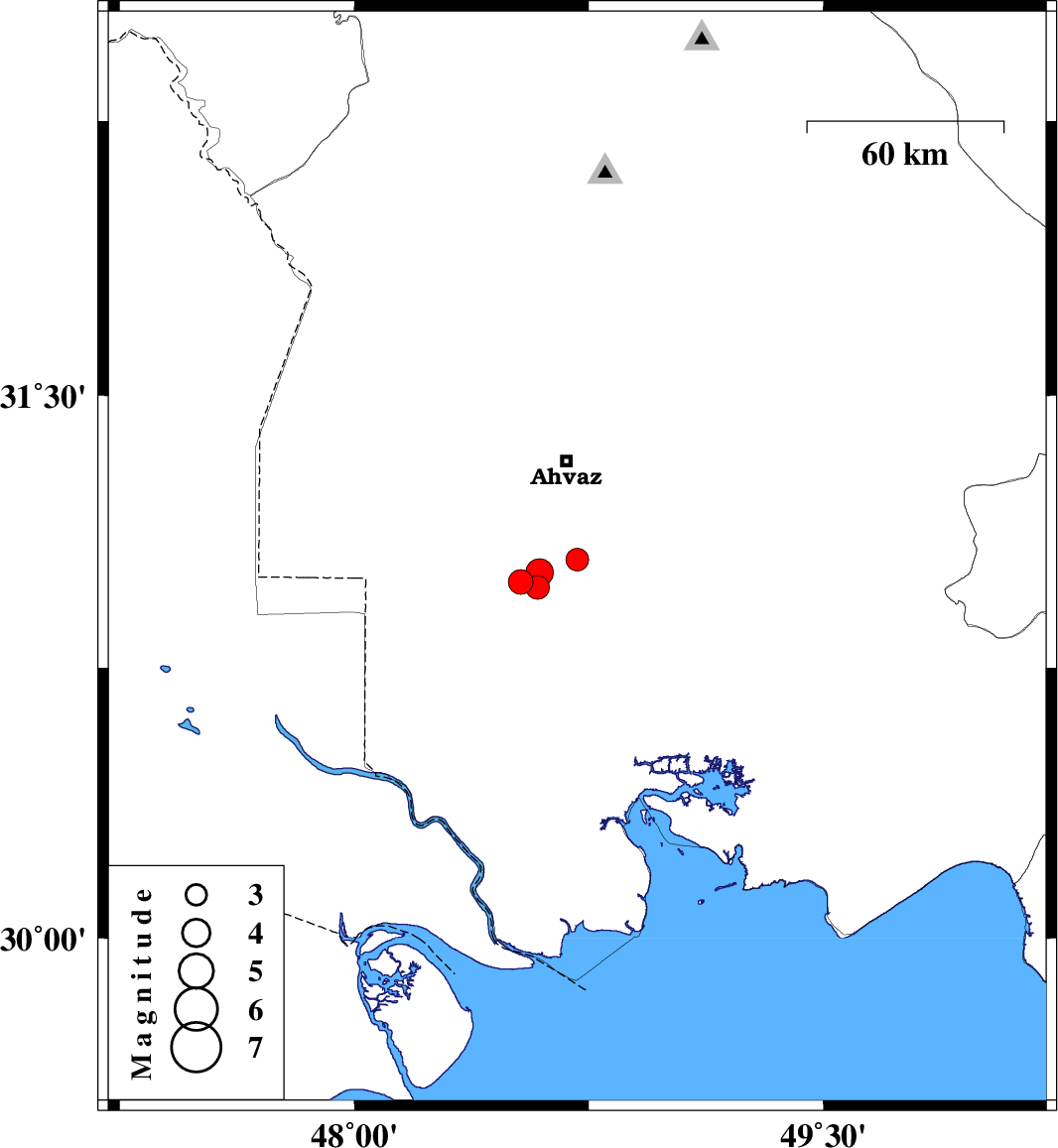 | 2022/09/11 | 15:19:06.7 | 19:49:06.7 | 31.049 | 48.713 | 12 | ML3.2 | Khoozestan Province, 30 km South of Ahvaz | ||
