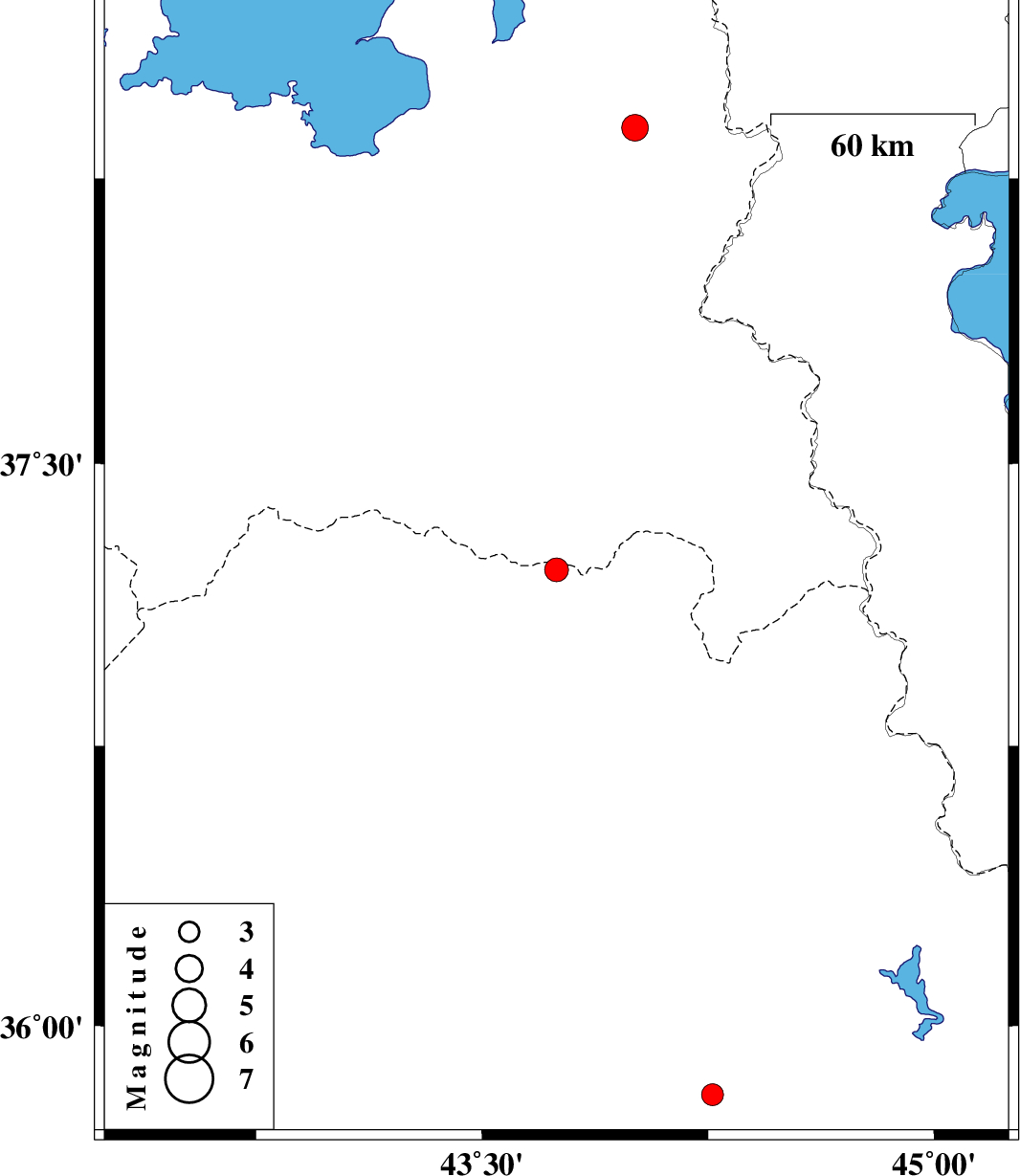 | 2022/09/11 | 10:57:12.9 | 15:27:12.9 | 37.219 | 43.747 | 12 | ML3.5 | Iraq | ||