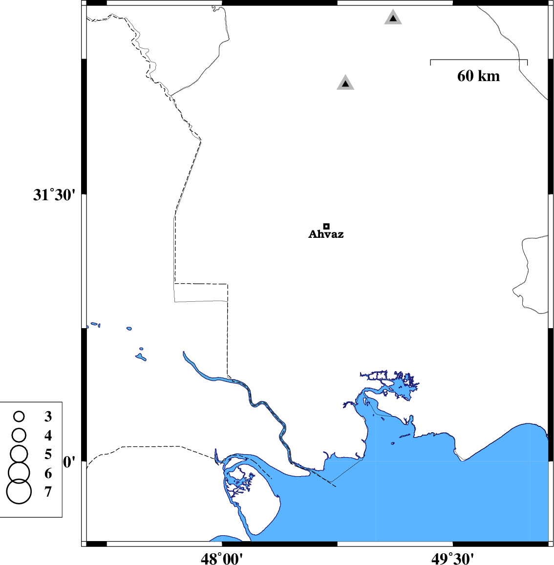 | 2022/09/11 | 07:35:25.2 | 12:05:25.2 | 31.013 | 48.592 | 12 | ML4 | Khoozestan Province, 35 km South of Ahvaz |