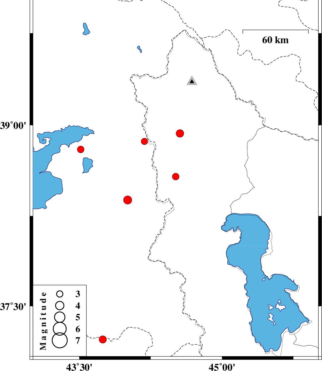 | 2022/09/05 | 08:49:16.2 | 13:19:16.2 | 38.383 | 44.008 | 12 | ML3.9 | Turkey, 70 km North-West of Salmas | ||