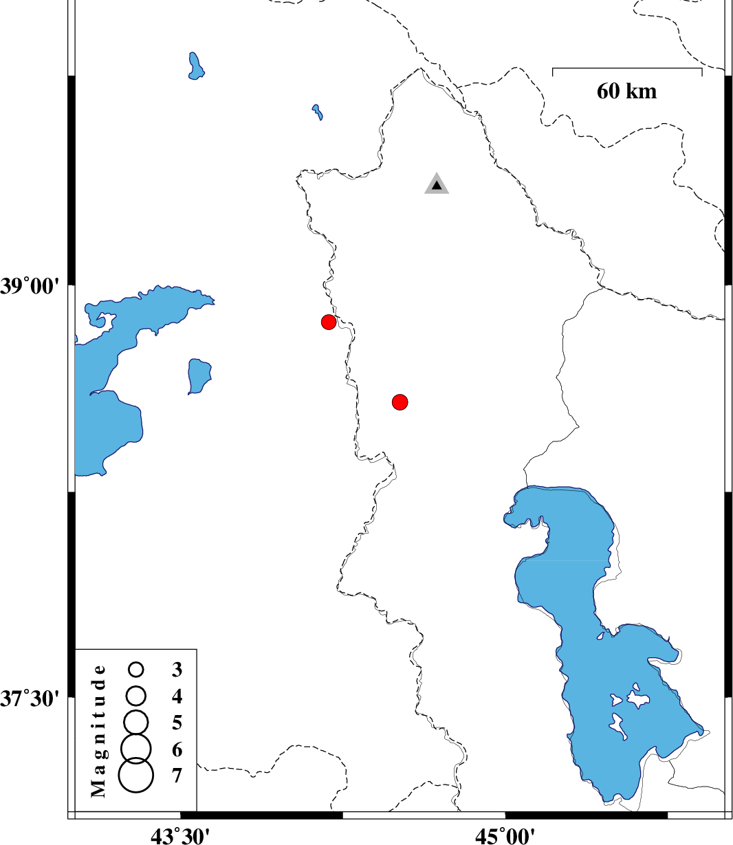 2022/09/18 | 21:13:09.6 | 01:43:09.6 | 38.866 | 44.184 | 12 | ML3.1 | Turkey, 30 km South-West of Seyah Cheshmah |