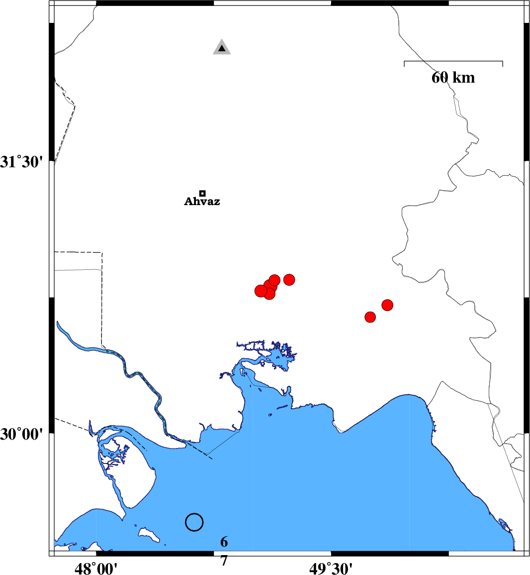 | 2022/09/11 | 15:19:06.7 | 19:49:06.7 | 31.049 | 48.713 | 12 | ML3.2 | Khoozestan Province, 30 km South of Ahvaz | ||