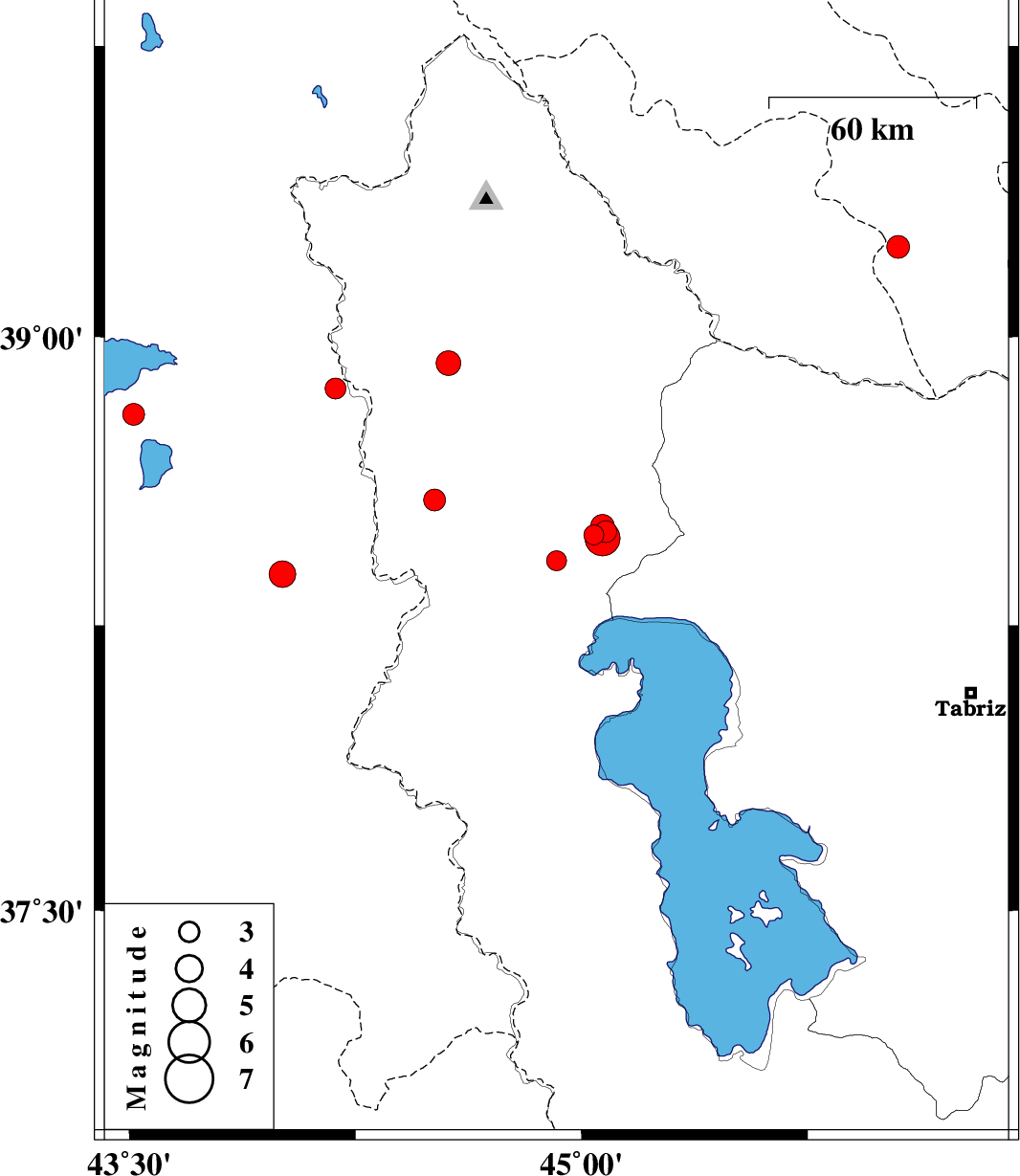 | 2022/09/05 | 08:49:16.2 | 13:19:16.2 | 38.383 | 44.008 | 12 | ML3.9 | Turkey, 70 km North-West of Salmas | ||
