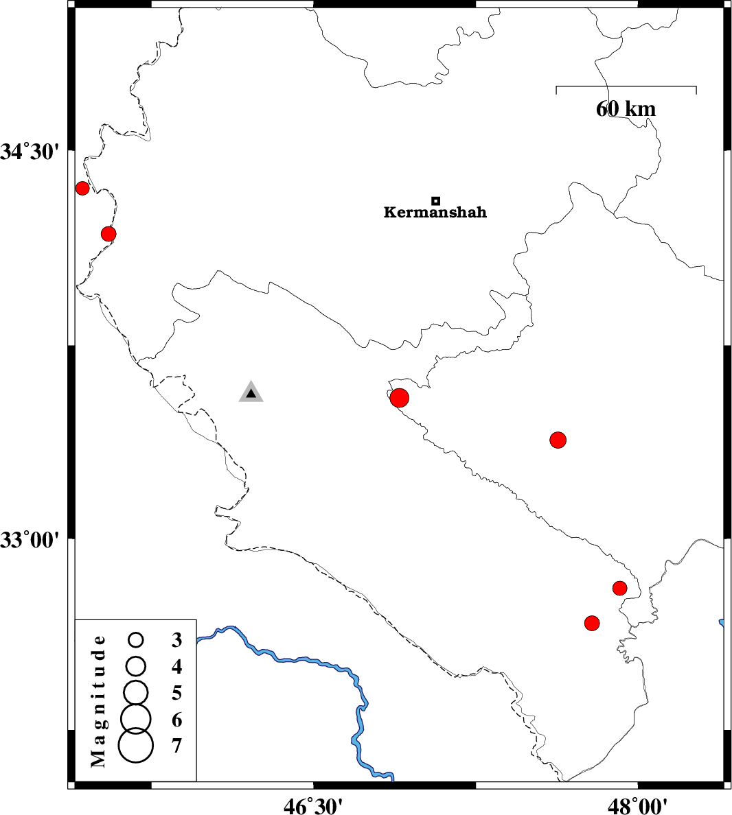 | 2022/09/28 | 16:18:03.8 | 19:48:03.8 | 33.546 | 46.896 | 10 | ML3.9 | Lorestan Province, 45 km -East of Ilam | ||