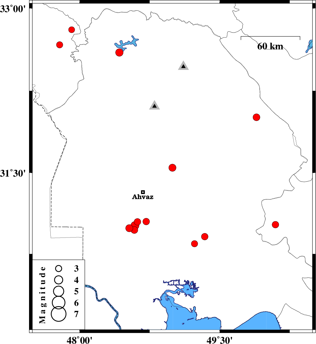 | 2022/10/01 | 21:19:57.7 | 00:49:57.7 | 31.545 | 48.994 | 13 | ML3.5 | Khoozestan Province, 39 km North-East of Ahvaz | ||