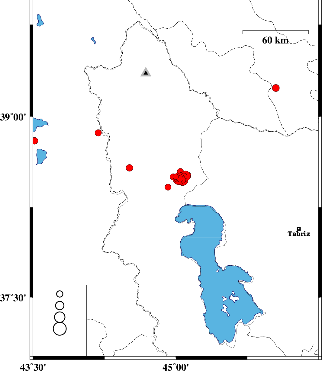 | 2022/09/21 | 11:14:21.2 | 15:44:21.2 | 38.418 | 44.917 | 12 | ML3 | Azarbaijan Gharbi Province, 15 km South of Khoy | ||
