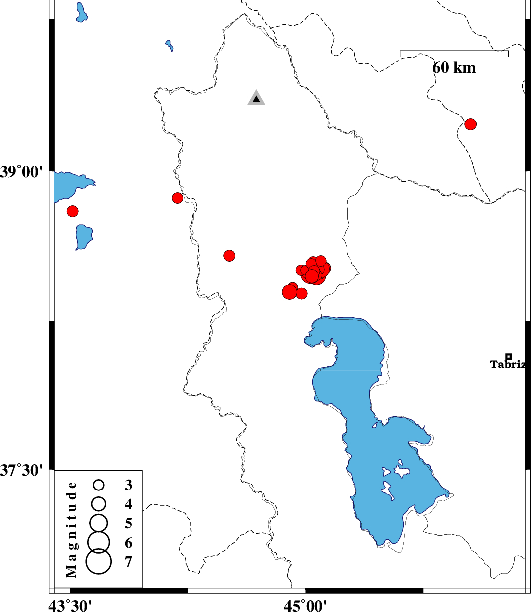 | 2022/09/21 | 11:14:21.2 | 15:44:21.2 | 38.418 | 44.917 | 12 | ML3 | Azarbaijan Gharbi Province, 15 km South of Khoy | ||