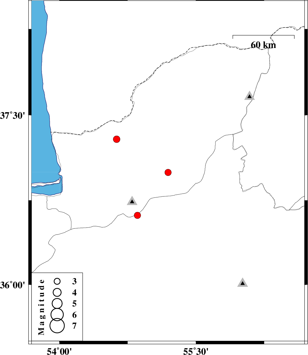 | 2022/10/05 | 17:01:23.3 | 20:31:23.3 | 36.617 | 54.857 | 12 | ML3.3 | Semnan Province, 32 km South of Ali Abad | ||
