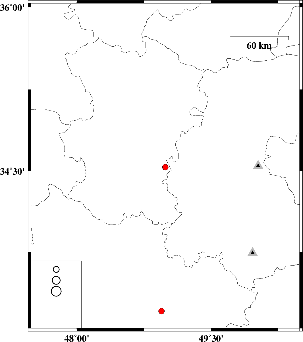 | 2022/10/11 | 05:12:50.8 | 08:42:50.8 | 34.535 | 48.989 | 12 | ML3 | Hamedan Province, 31 km North-East of Malayer | ||