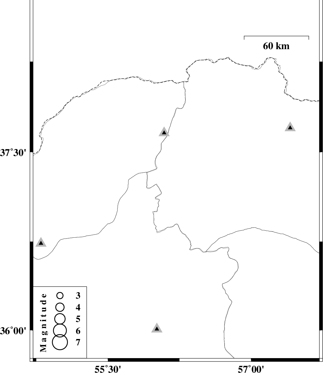 | 2022/10/21 | 05:11:21.3 | 08:41:21.3 | 37.261 | 56.216 | 12 | ML3 | Khorasan(north) Province, 38 km North-West of Jajarm |