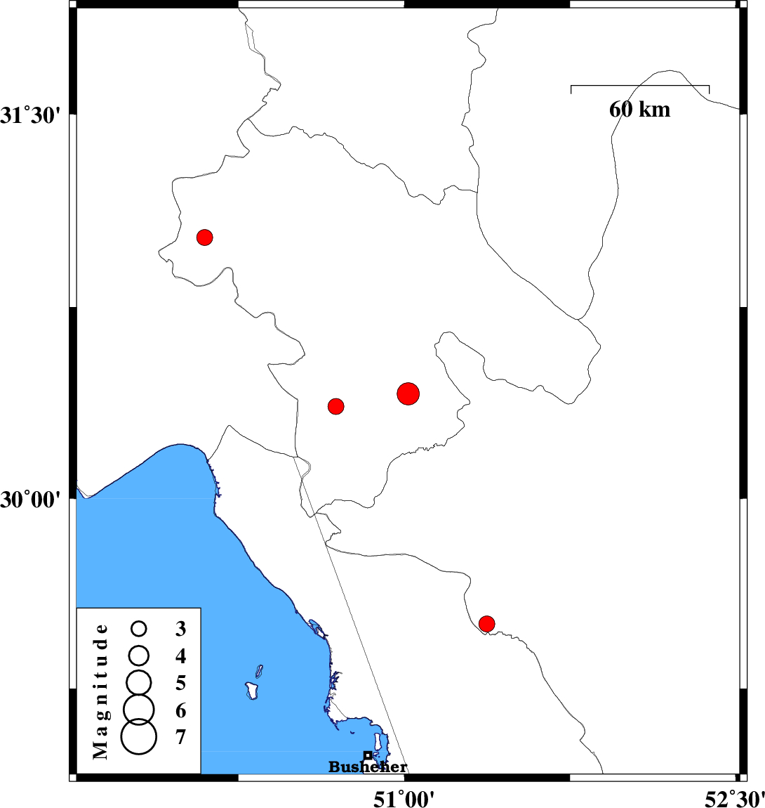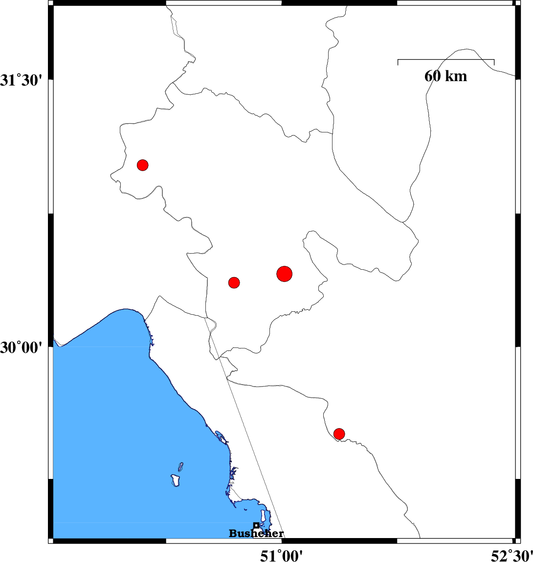| 2022/10/02 | 05:15:10.5 | 08:45:10.5 | 29.506 | 51.373 | 12 | ML3.3 | Fars Province, 30 km South-West of Kazerun | ||