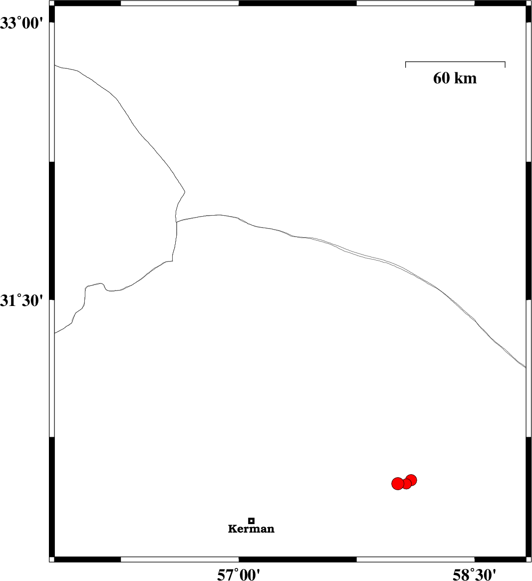 | 2022/10/21 | 13:47:07.3 | 17:17:07.3 | 31.609 | 57.357 | 12 | ML3.2 | Kerman Province, 64 km North-East of Ravar | ||