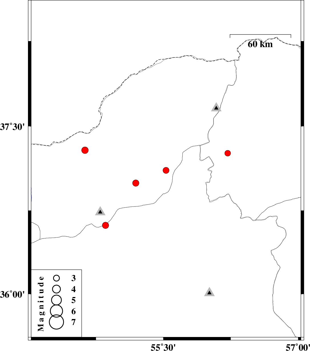 | 2022/10/05 | 17:01:23.3 | 20:31:23.3 | 36.617 | 54.857 | 12 | ML3.3 | Semnan Province, 32 km South of Ali Abad | ||