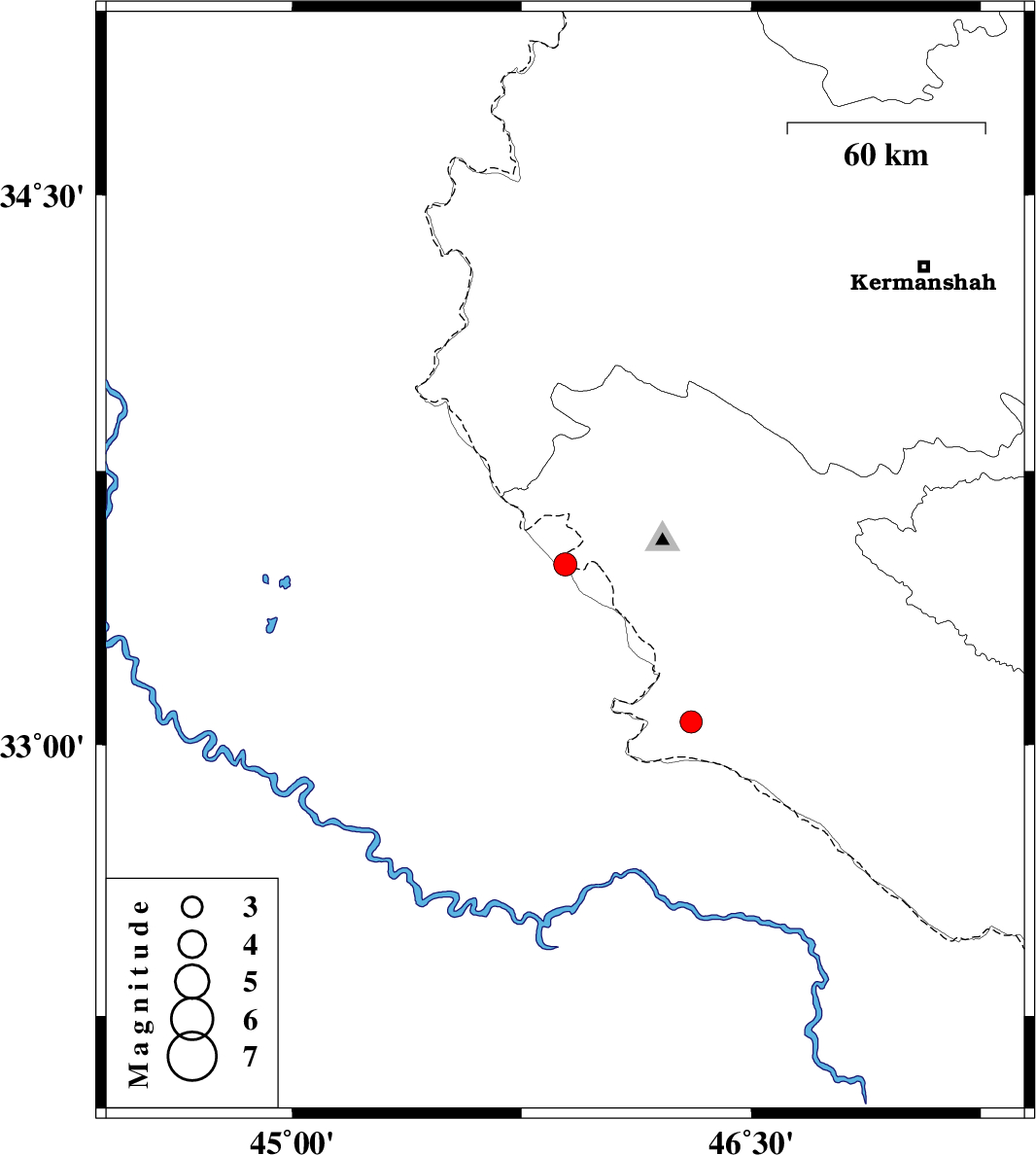 | 2022/10/25 | 13:20:08.5 | 16:50:08.5 | 33.063 | 46.303 | 12 | ML3.2 | Ilam Province, 14 km -East of Mehran |