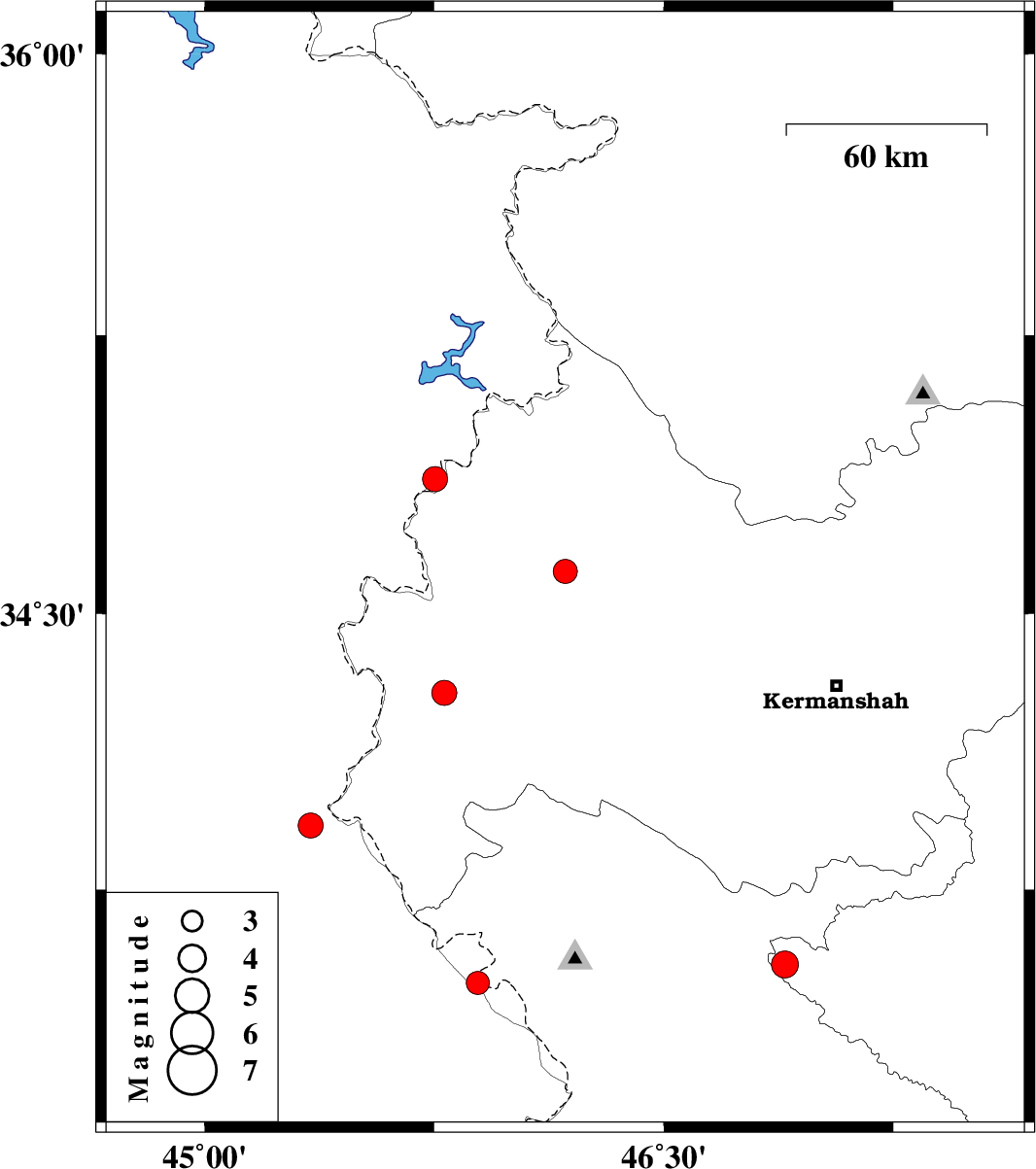 | 2022/10/28 | 15:06:07.2 | 18:36:07.2 | 34.614 | 46.178 | 12 | ML3.5 | Kermanshah Province, 31 km North-East of Sar-e pol-e zahab | ||