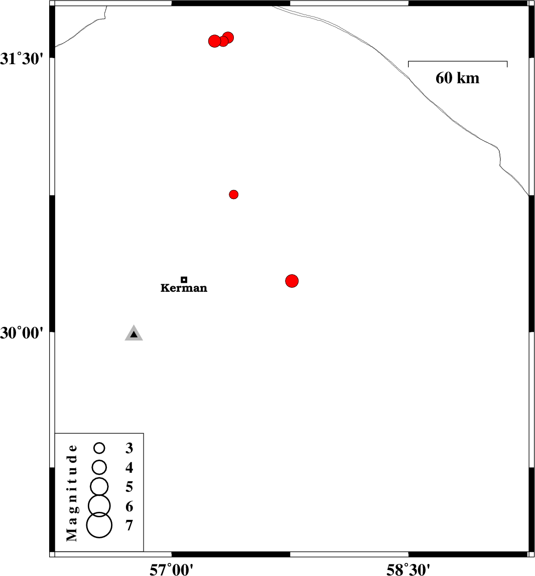 | 2022/10/26 | 22:27:39.5 | 01:57:39.5 | 30.281 | 57.761 | 12 | ML3.6 | Kerman Province, 65 km -East of Kerman | ||