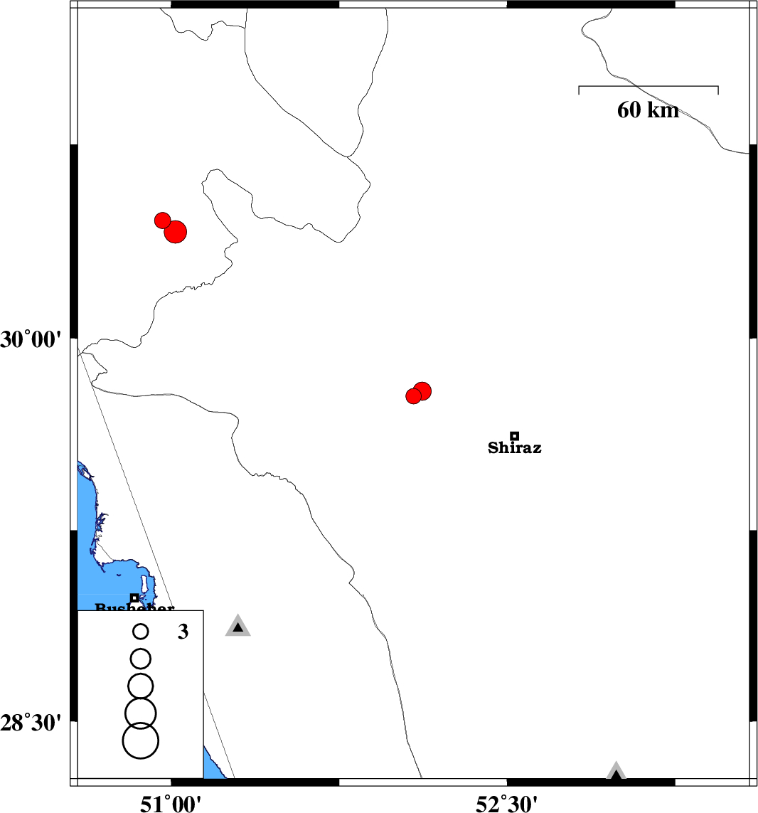 2022/10/29 15:56:47.0 19:26:47.0 29.79352.12117 ML3.6 Fars Province, 44 km North-West of Shiraz