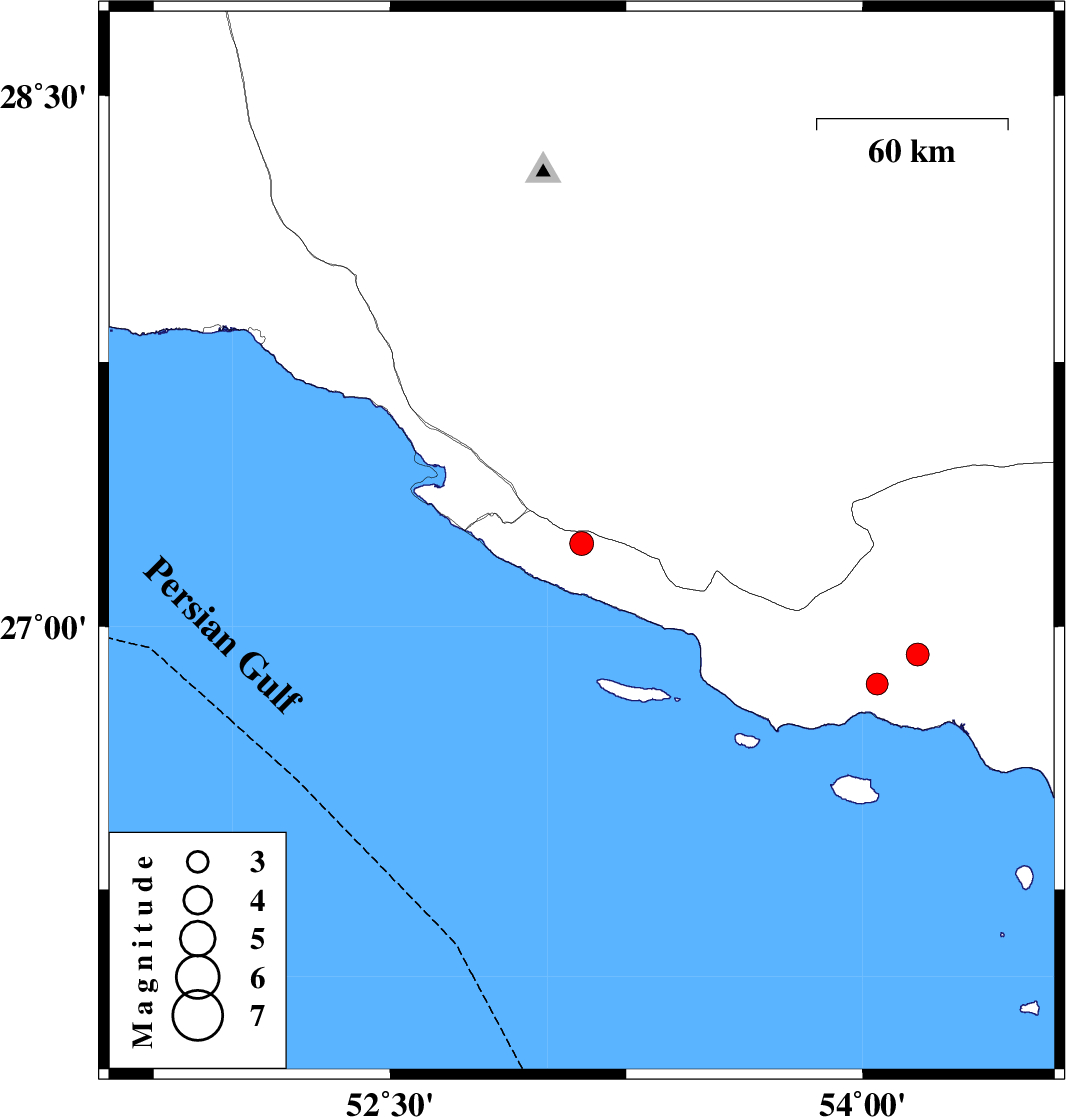 | 2022/10/26 | 14:22:56.7 | 17:52:56.7 | 26.92 | 54.175 | 12 | ML3.2 | Hormozgan Province, 36 km South-West of Bastak | ||