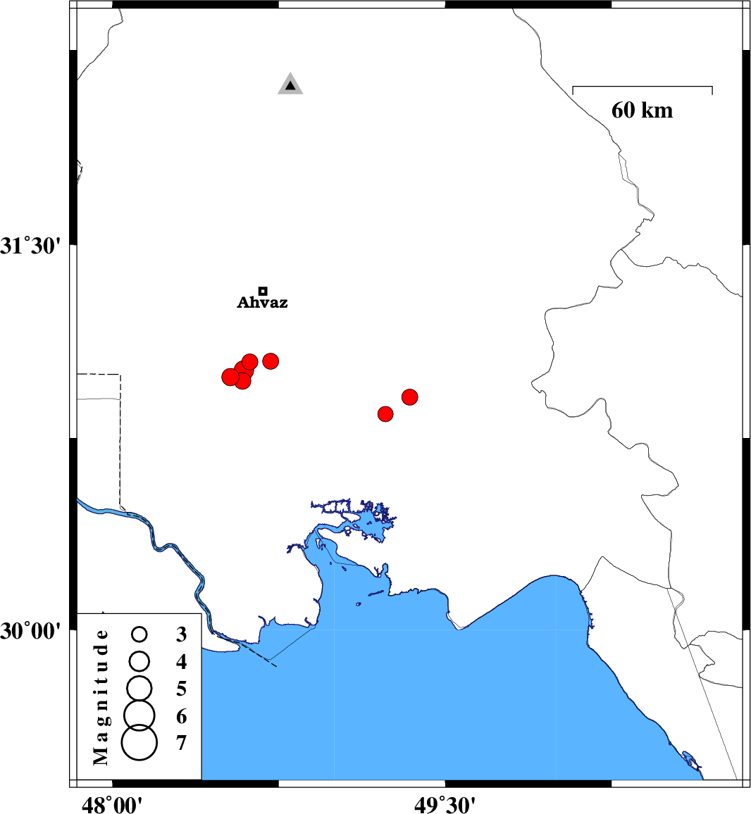 | 2022/09/11 | 15:19:06.7 | 19:49:06.7 | 31.049 | 48.713 | 12 | ML3.2 | Khoozestan Province, 30 km South of Ahvaz | ||