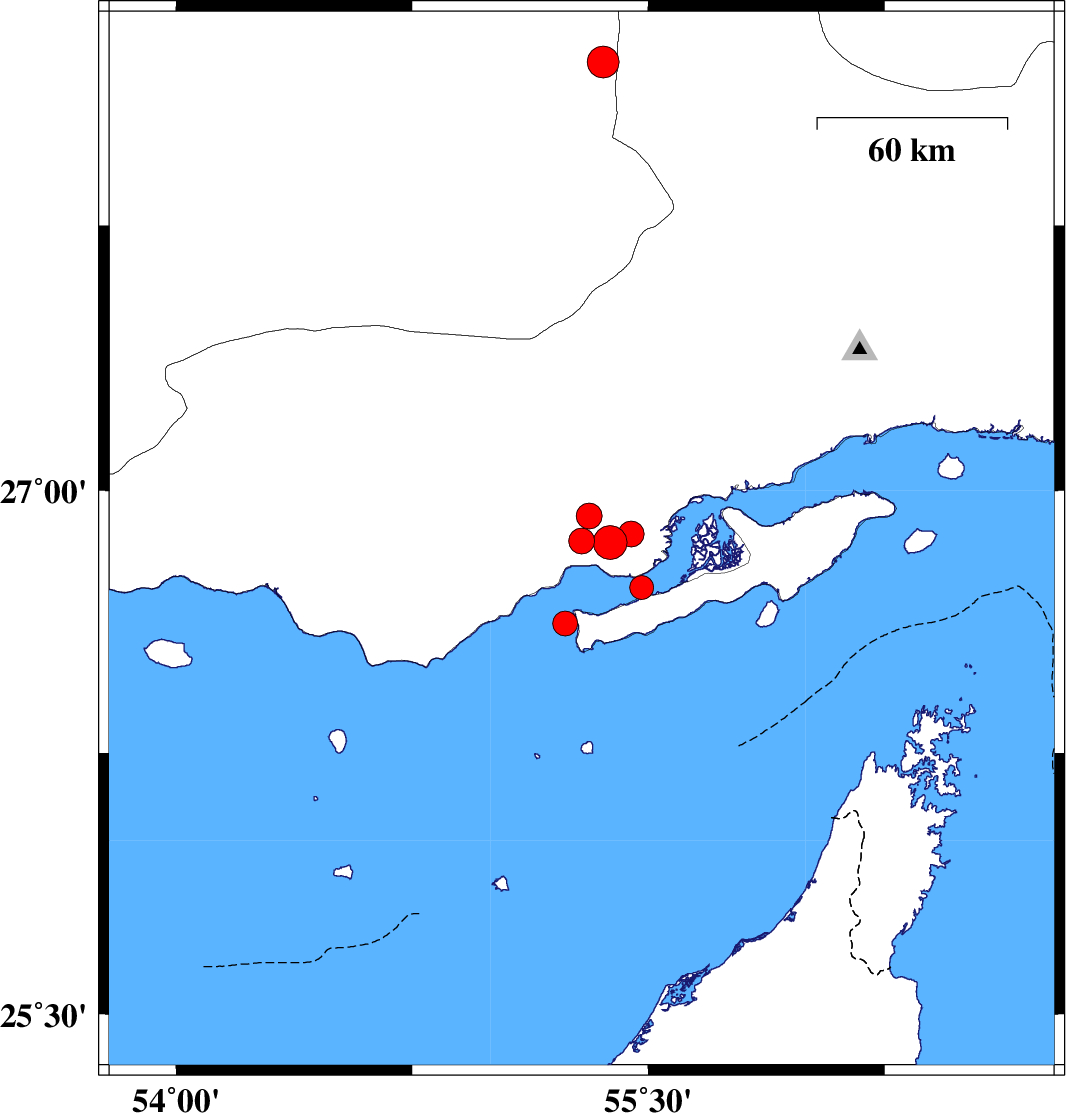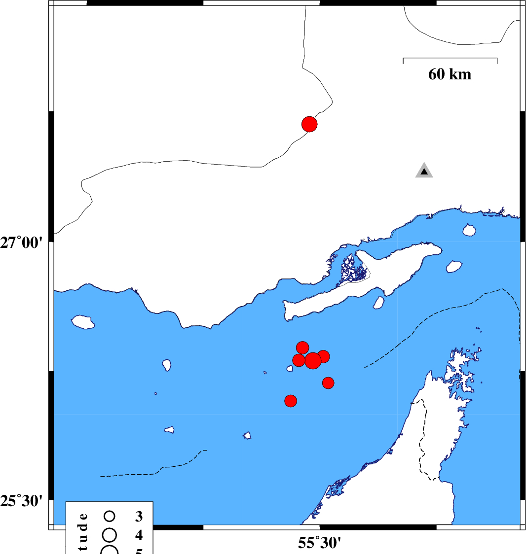 | 2022/08/01 | 14:35:45.0 | 19:05:45.0 | 26.723 | 55.478 | 16 | ML3.4 | Persian Gulf, 66 km North-East of Bandar-e lengeh | ||