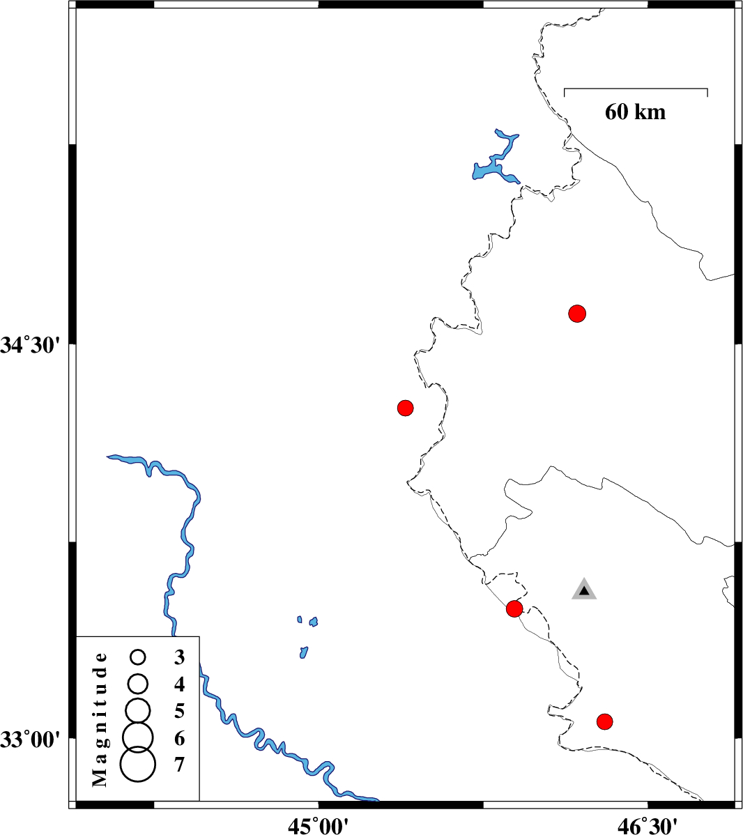 | 2022/10/28 | 15:06:07.2 | 18:36:07.2 | 34.614 | 46.178 | 12 | ML3.5 | Kermanshah Province, 31 km North-East of Sar-e pol-e zahab | ||
