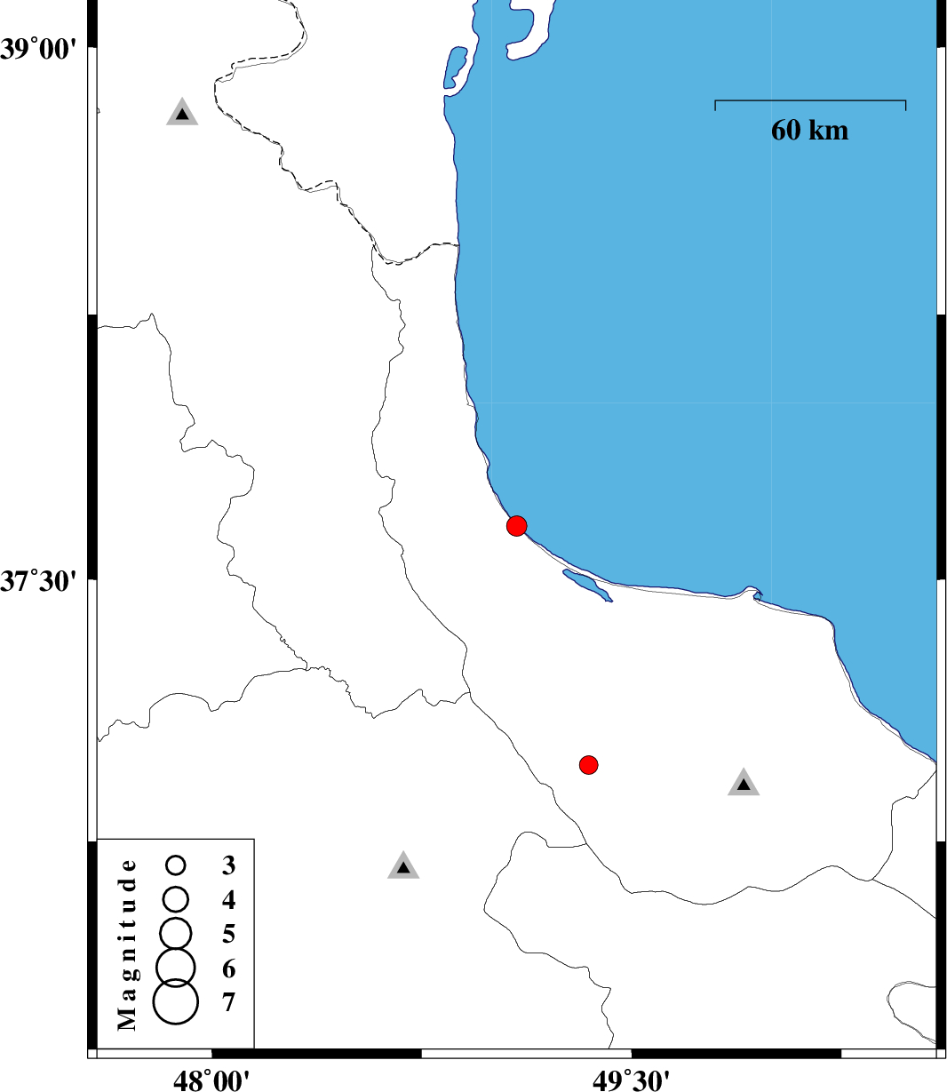 | 2022/11/25 | 00:30:37.7 | 04:00:37.7 | 37.651 | 49.089 | 12 | ML3.3 | , 13 km North of Rezvanshahr | ||