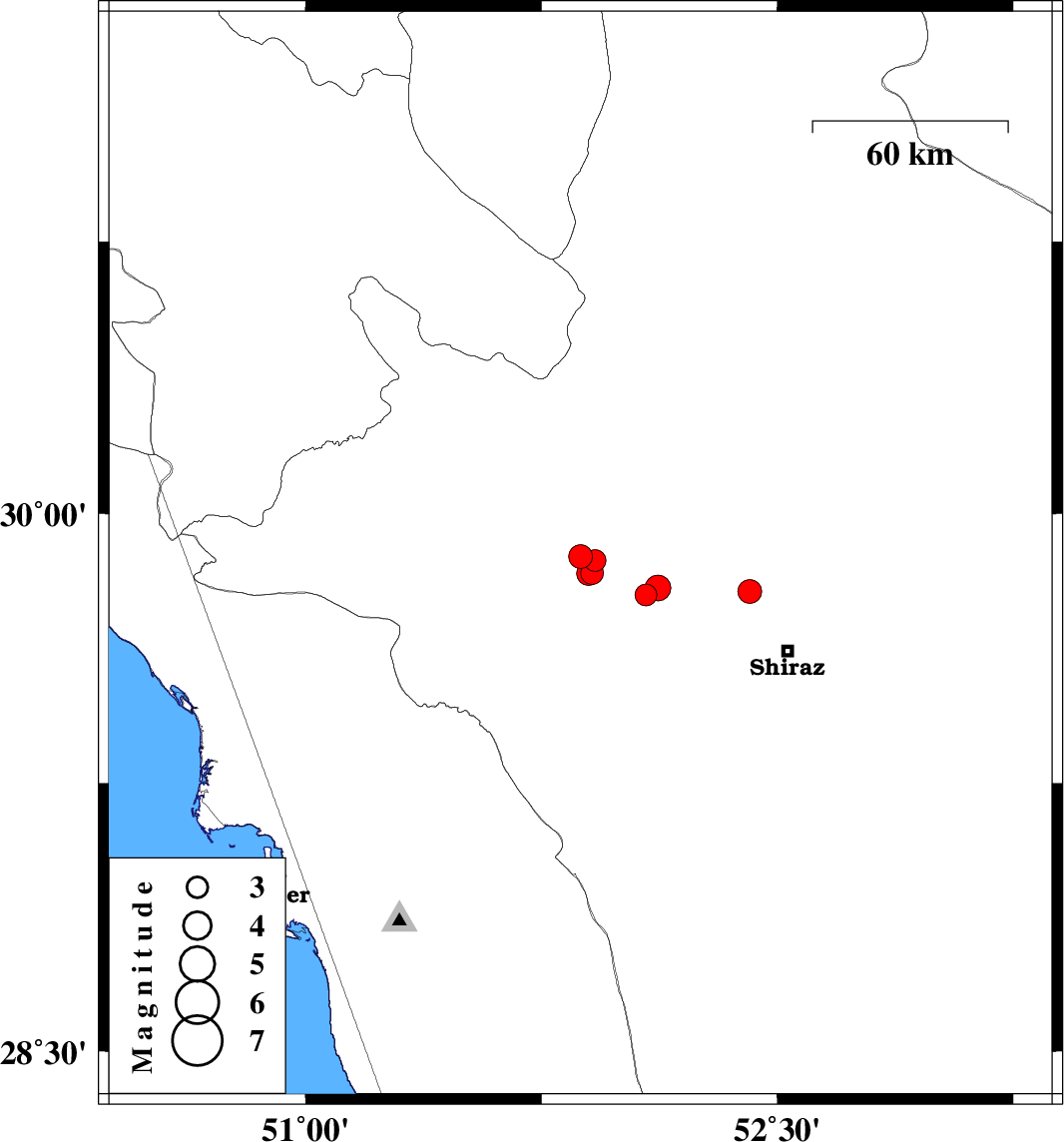| 2022/11/25 | 05:19:32.5 | 08:49:32.5 | 29.835 | 51.911 | 12 | ML3.2 | Fars Province, 34 km North-East of Kazerun | ||