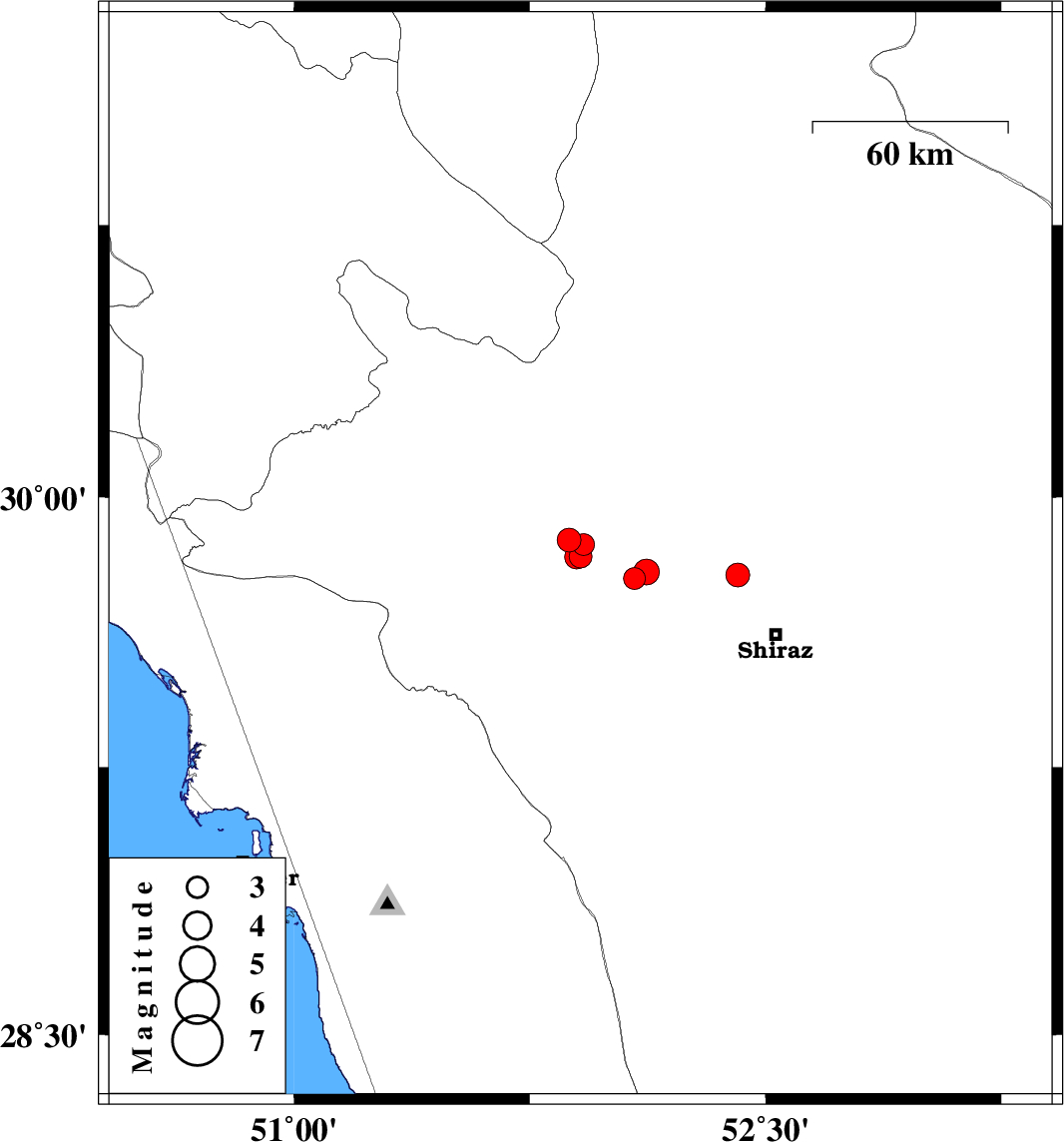 | 2022/11/25 | 05:19:32.5 | 08:49:32.5 | 29.835 | 51.911 | 12 | ML3.2 | Fars Province, 34 km North-East of Kazerun | ||