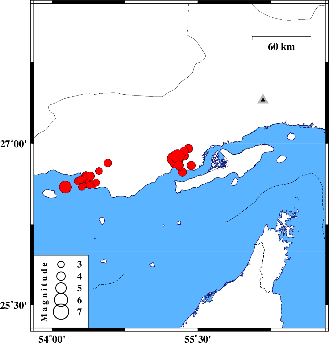 2022/07/01 21:53:22.8 02:23:22.8 26.73555.34312 ML3.9 Persian Gulf, 54 km North-East of Bandar-e lengeh