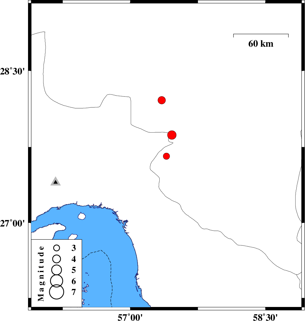 | 2022/07/01 | 19:28:31.4 | 23:58:31.4 | 28.21 | 57.349 | 12 | ML3.8 | Kerman Province, 45 km North-West of Kahnuj | ||