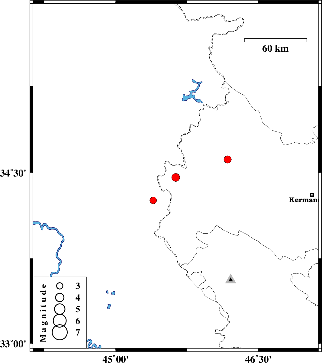 | 2022/10/28 | 15:06:07.2 | 18:36:07.2 | 34.614 | 46.178 | 12 | ML3.5 | Kermanshah Province, 31 km North-East of Sar-e pol-e zahab |
