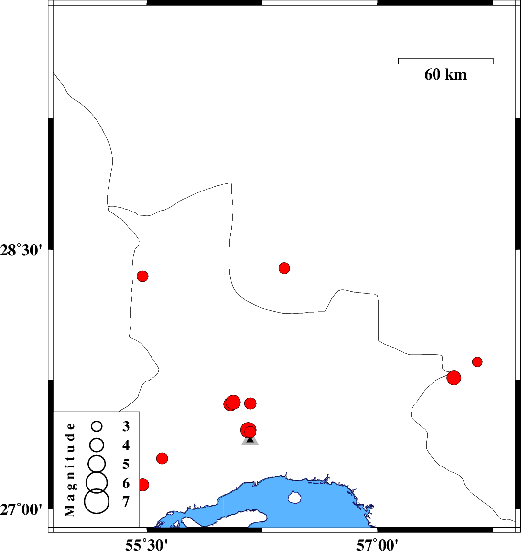 | 2022/10/29 | 12:34:22.8 | 16:04:22.8 | 27.292 | 55.6 | 12 | ML3.2 | Hormozgan Province, 68 km North-West of Bandar-e abbas |