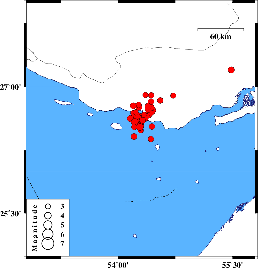 2022/06/15 06:04:38.7 10:34:38.7 26.5854.28926 ML4.8 Persian Gulf, 56 km -West of Bandar-e lengeh
