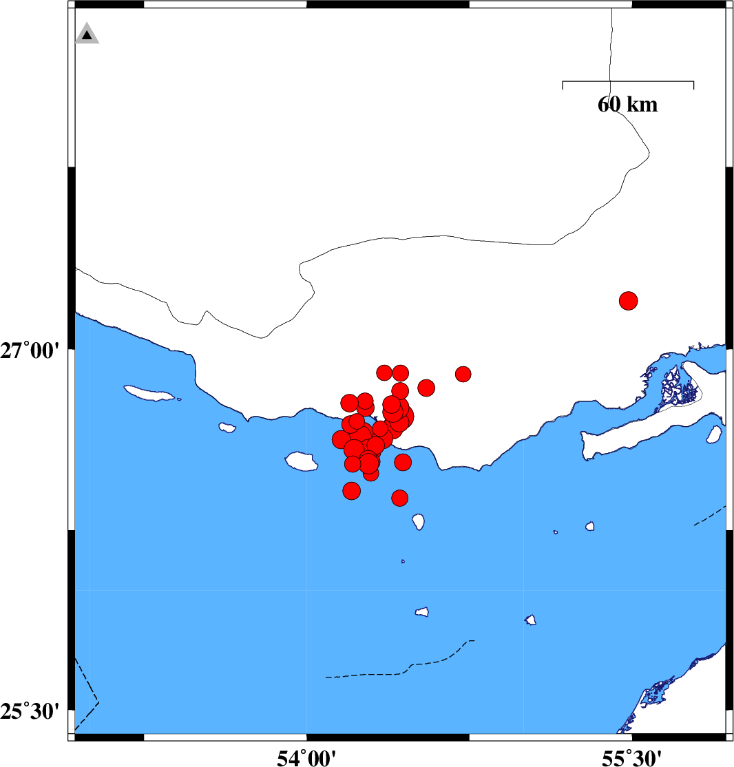 2022/06/15 18:07:49.5 22:37:49.5 26.53454.29512 ML3.8 Persian Gulf, 55 km -West of Bandar-e lengeh