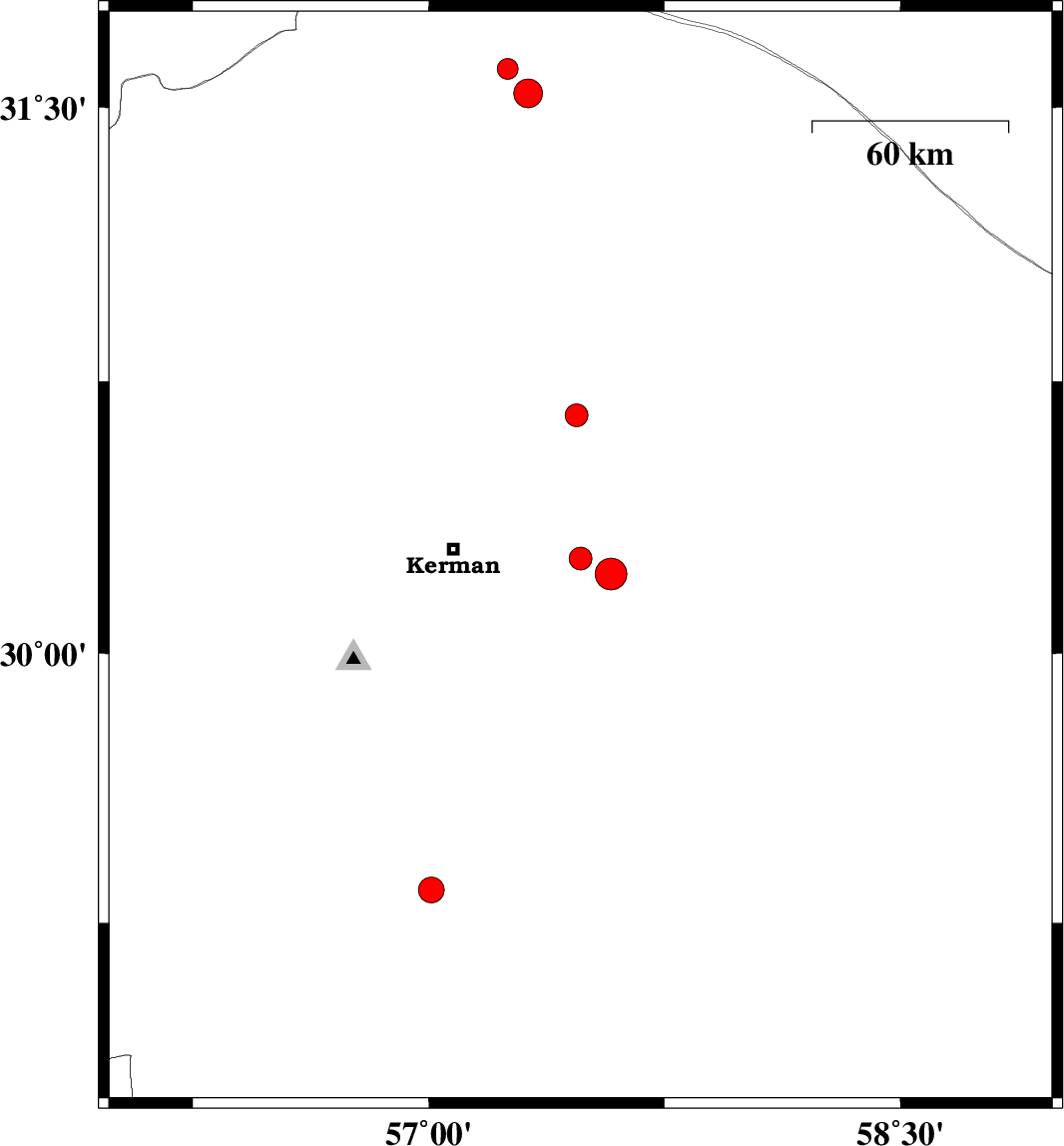 | 2022/11/12 | 22:48:02.7 | 02:18:02.7 | 30.219 | 57.58 | 12 | ML4.5 | Kerman Province, 49 km -East of Kerman |