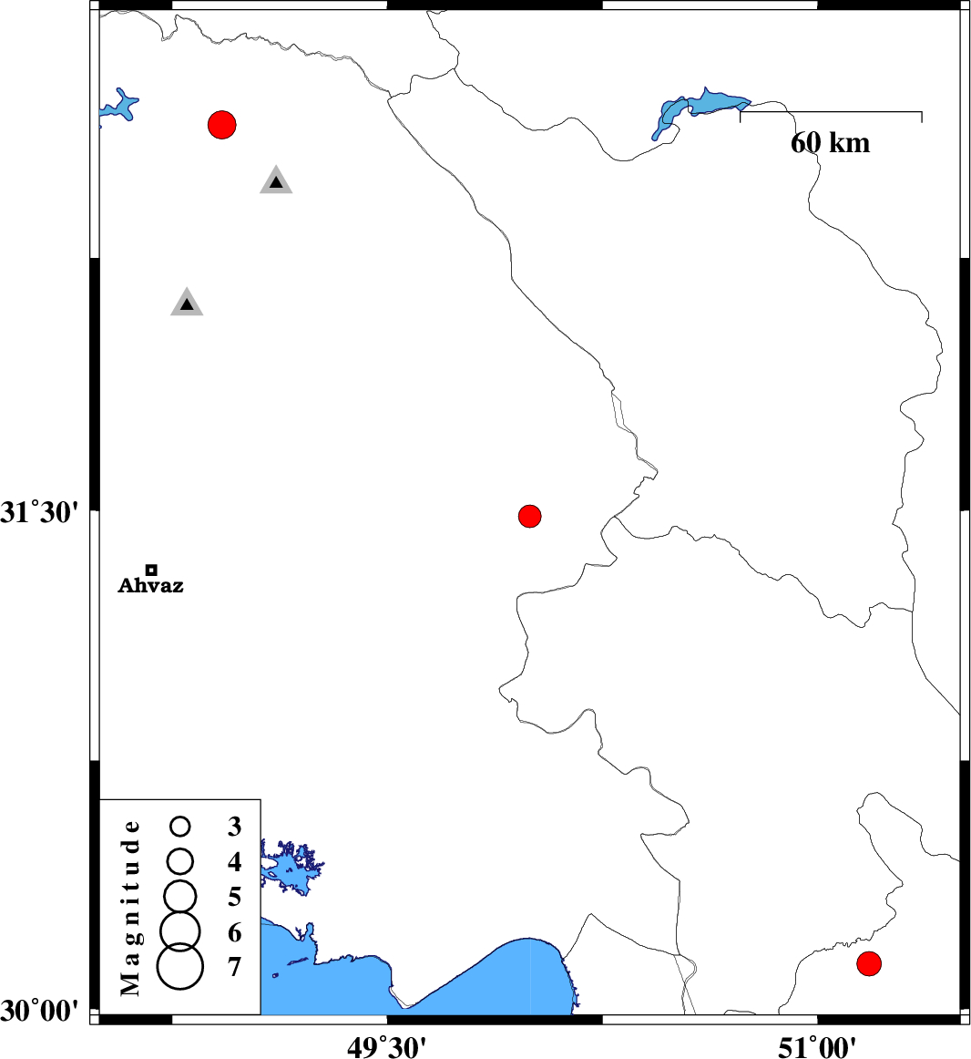 | 2022/12/12 | 07:38:58.8 | 11:08:58.8 | 31.482 | 49.996 | 16 | ML3.5 | Khoozestan Province, 10 km of Bagh Malek | ||