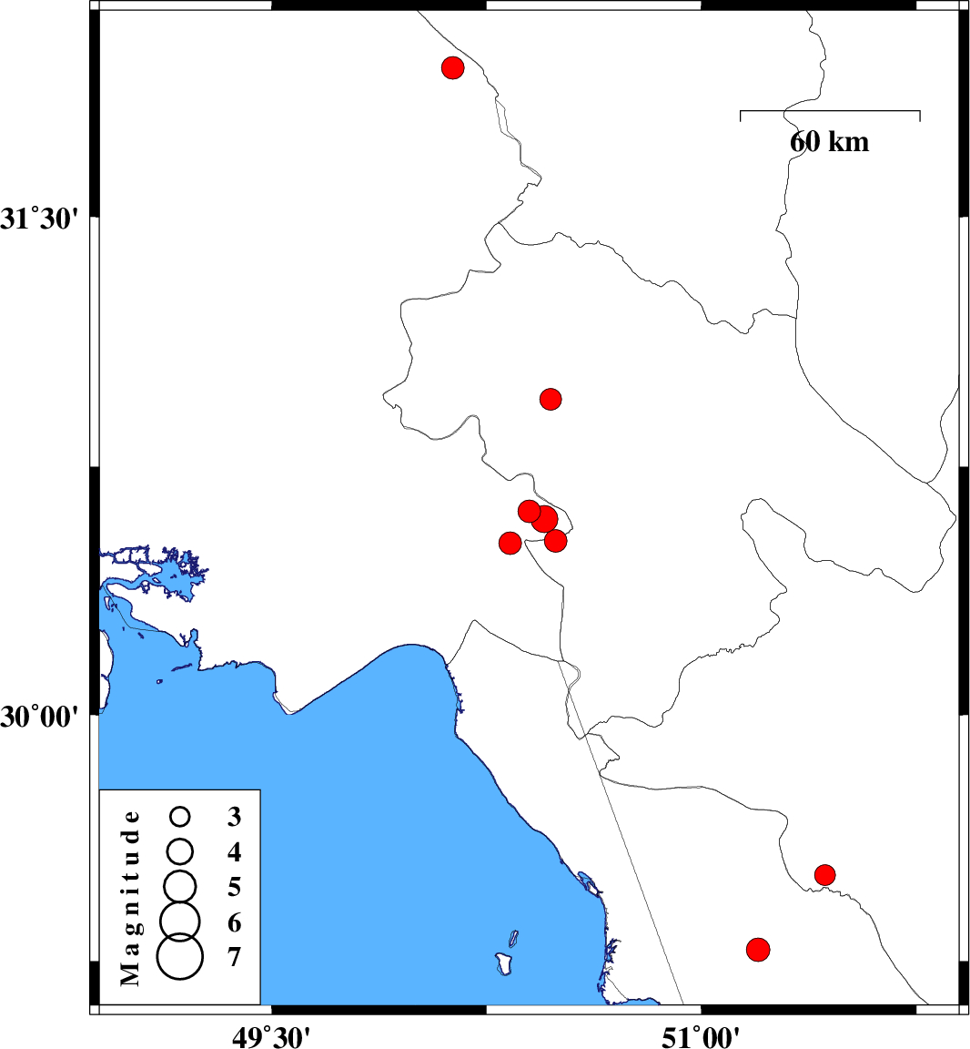 | 2023/01/27 | 09:36:39.4 | 13:06:39.4 | 30.593 | 50.452 | 16 | ML4.3 | Khoozestan Province, 20 km -East of Behbahan | ||