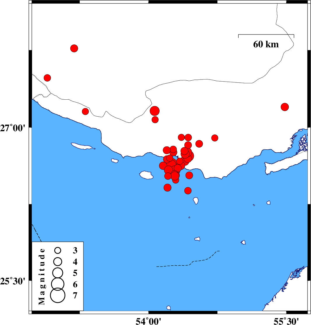 2022/06/15 06:15:42.8 10:45:42.8 26.69754.42712 ML4 Hormozgan Province, 56 km South of Bastak