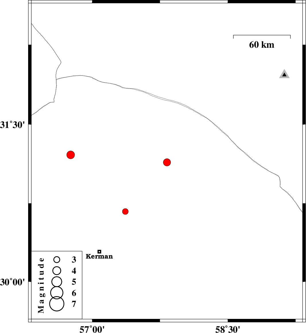 | 2022/06/12 | 12:13:32.1 | 16:43:32.1 | 31.211 | 56.762 | 12 | ML3.9 | Kerman Province, 8 km of Ravar |