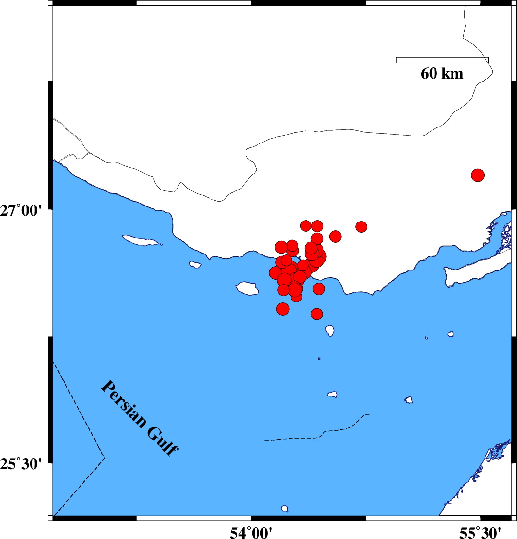 2022/06/15 | 15:44:08.9 | 20:14:08.9 | 26.383 | 54.429 | 12 | ML:3.4 | Persian Gulf, 45 km South-West of Bandar-e lengeh | ||