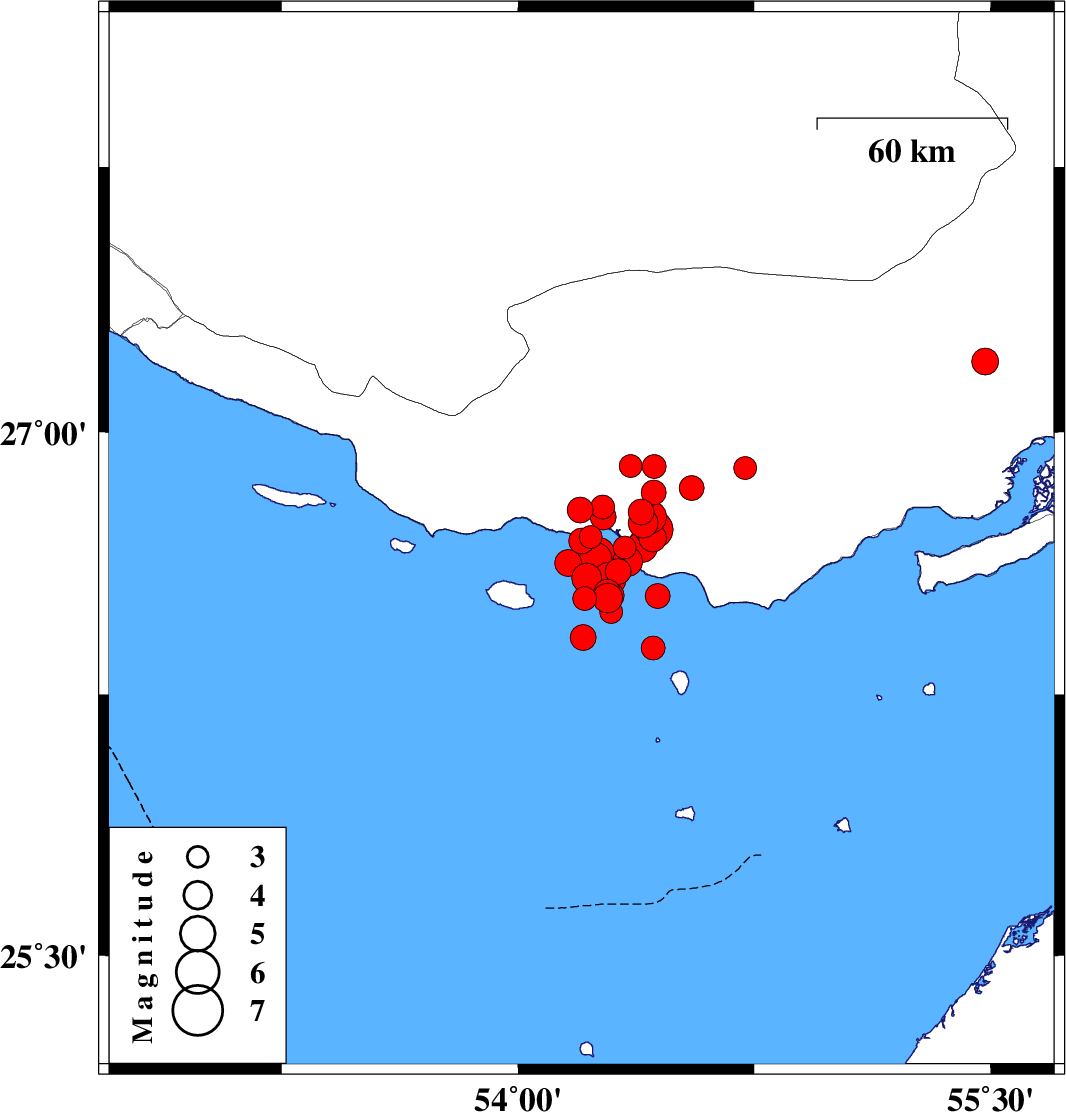 2022/06/15 06:15:42.8 10:45:42.8 26.69754.42712 ML4 Hormozgan Province, 56 km South of Bastak