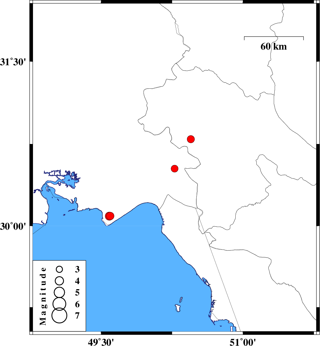 | 2023/02/04 | 16:00:51.4 | 19:30:51.4 | 30.09 | 49.587 | 12 | ML3.9 | Khoozestan Province, 20 km South-West of Hendijan | ||