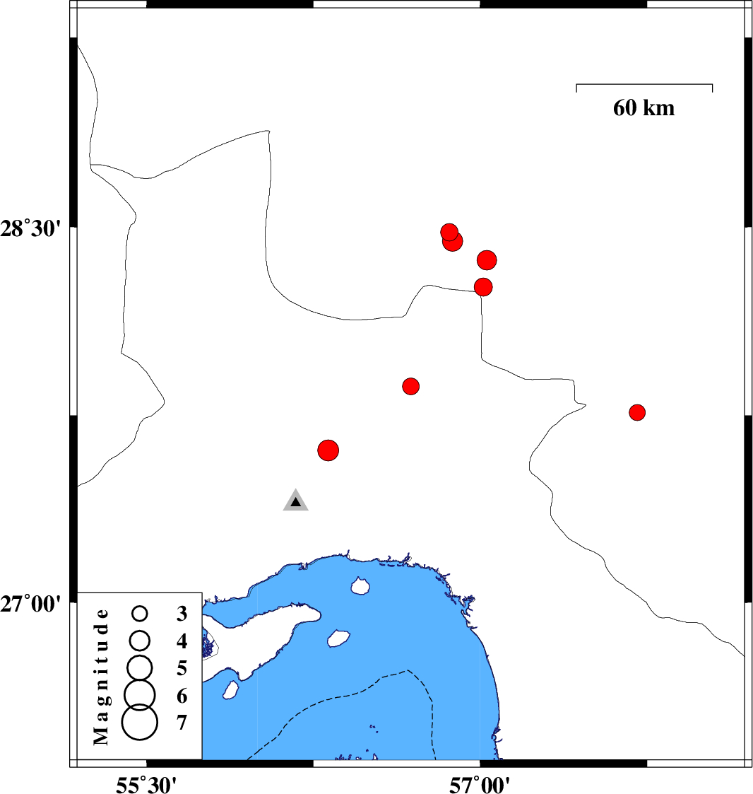 | 2023/01/10 | 16:17:06.3 | 19:47:06.3 | 27.611 | 56.316 | 12 | ML4.3 | Hormozgan Province, 48 km North of Bandar-e abbas |