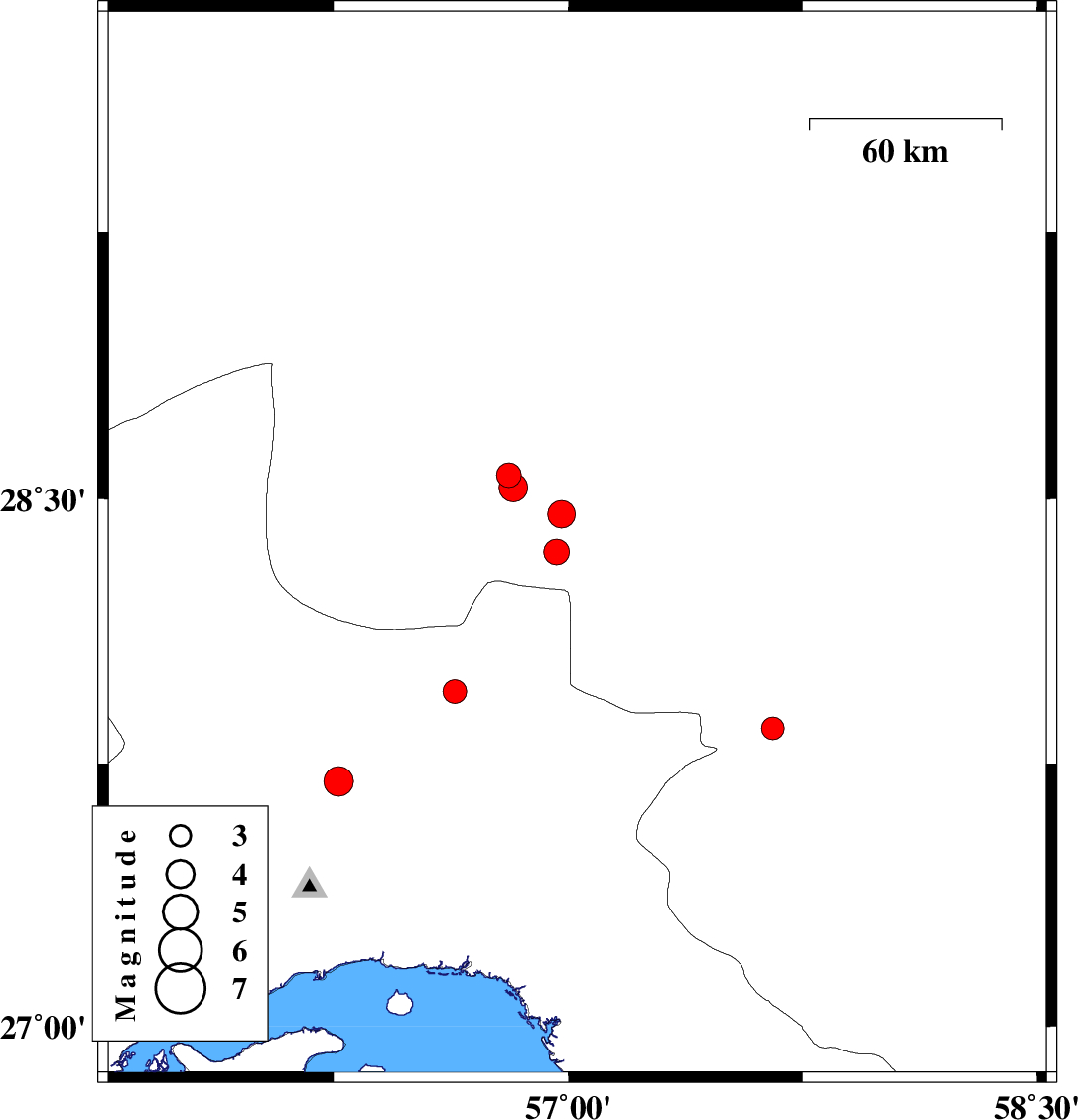 | 2023/01/10 | 16:17:06.3 | 19:47:06.3 | 27.611 | 56.316 | 12 | ML4.3 | Hormozgan Province, 48 km North of Bandar-e abbas |