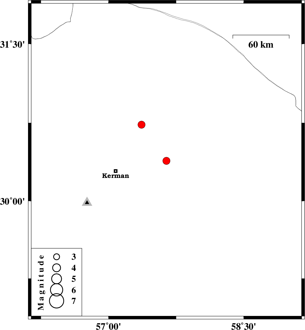| 2023/02/09 | 00:52:34.5 | 04:22:34.5 | 30.732 | 57.366 | 12 | ML3.6 | Kerman Province, 57 km North-East of Kerman |