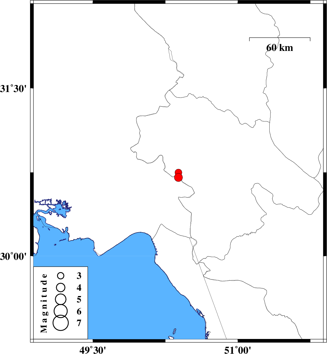 | 2023/02/21 | 00:27:46.8 | 03:57:46.8 | 30.748 | 50.385 | 9 | ML3.3 | Kohkiluieh va boyerahmad Province, 18 km -West of Dehdasht |