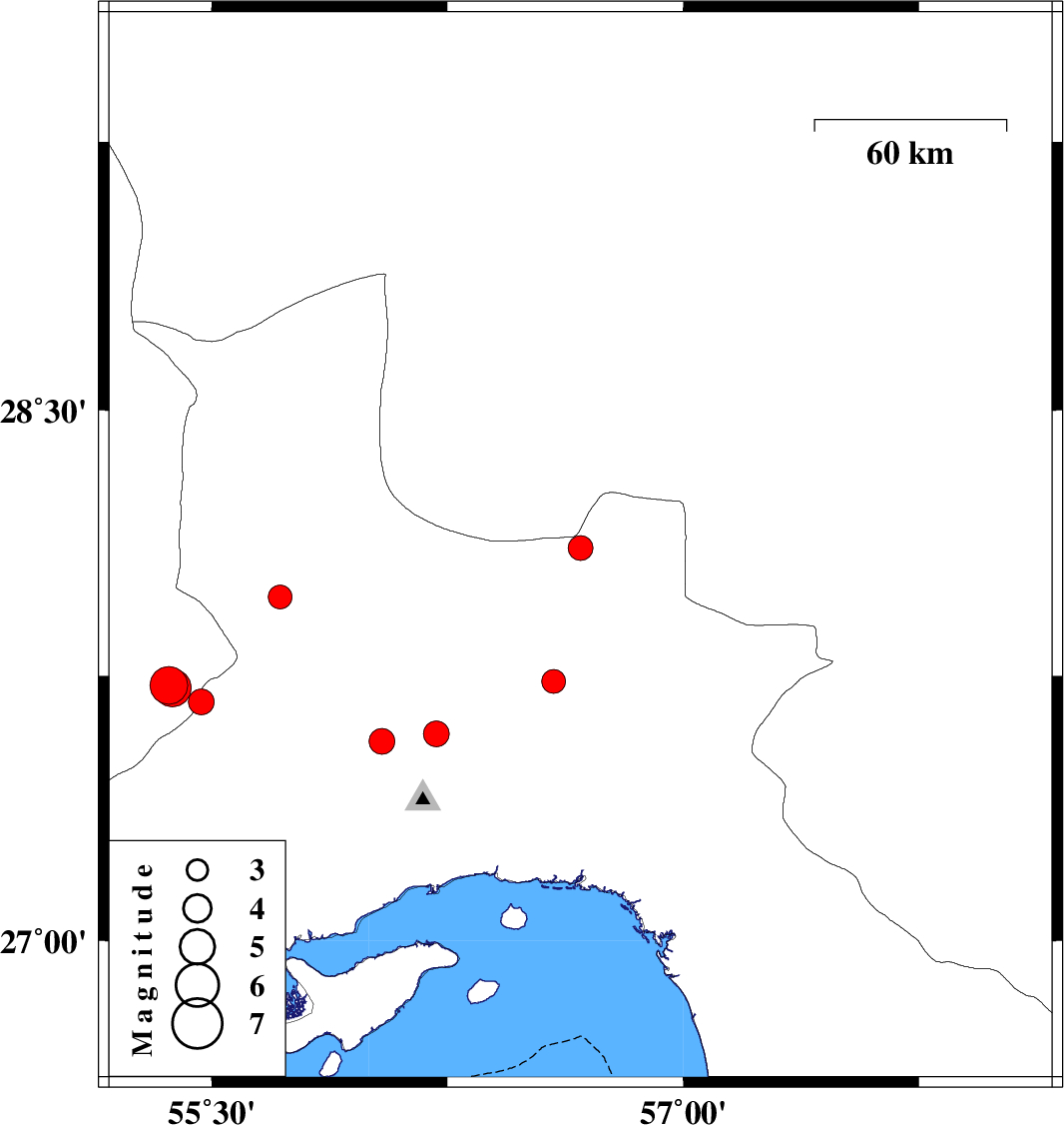 | 2023/02/20 | 07:39:19.6 | 11:09:19.6 | 27.586 | 56.214 | 10 | ML3.7 | Hormozgan Province, 45 km North of Bandar-e abbas | ||
