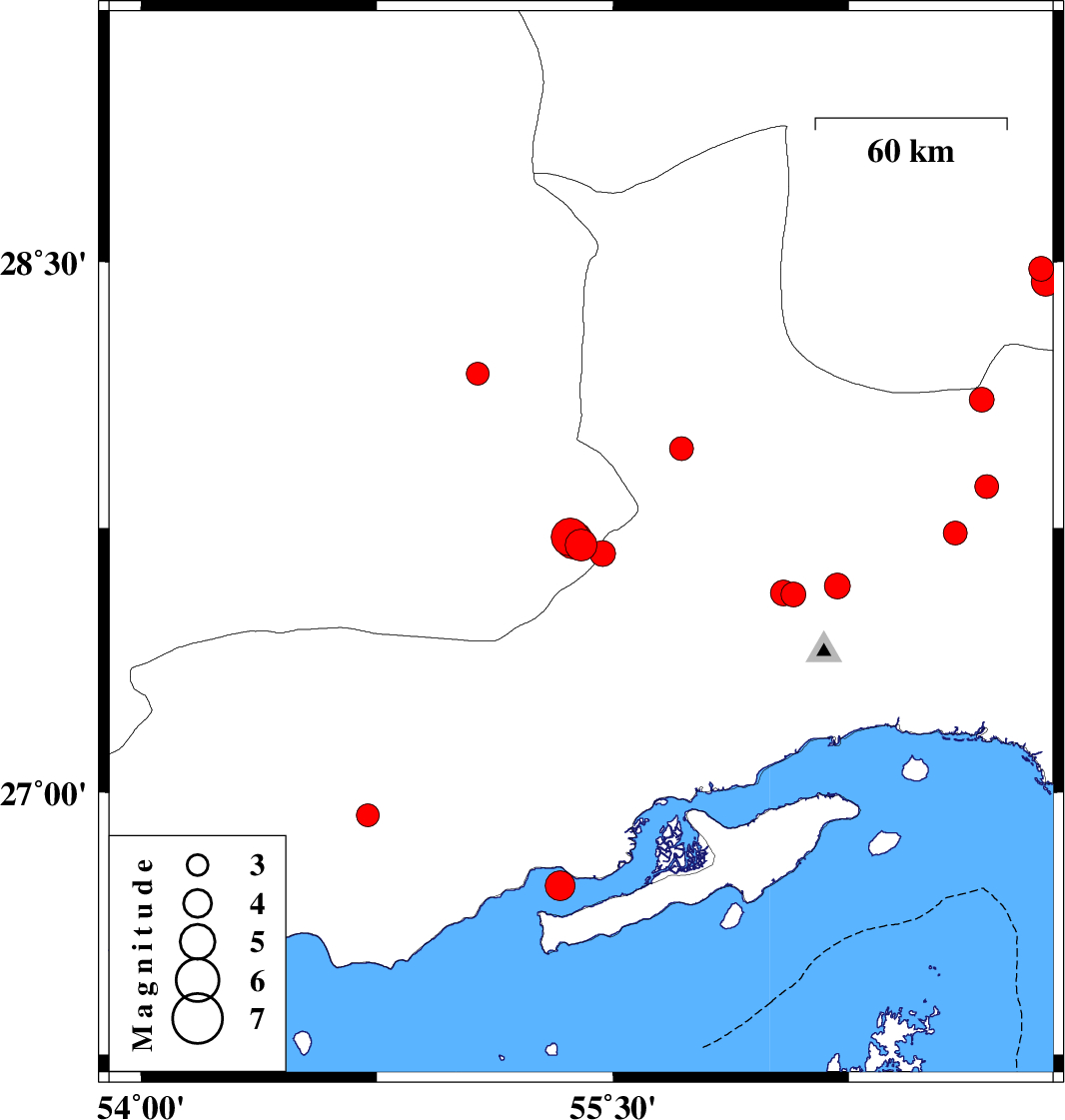 | 2023/02/07 | 02:30:57.5 | 06:00:57.5 | 26.734 | 55.333 | 12 | ML4.2 | Persian Gulf, 53 km North-East of Bandar-e lengeh |