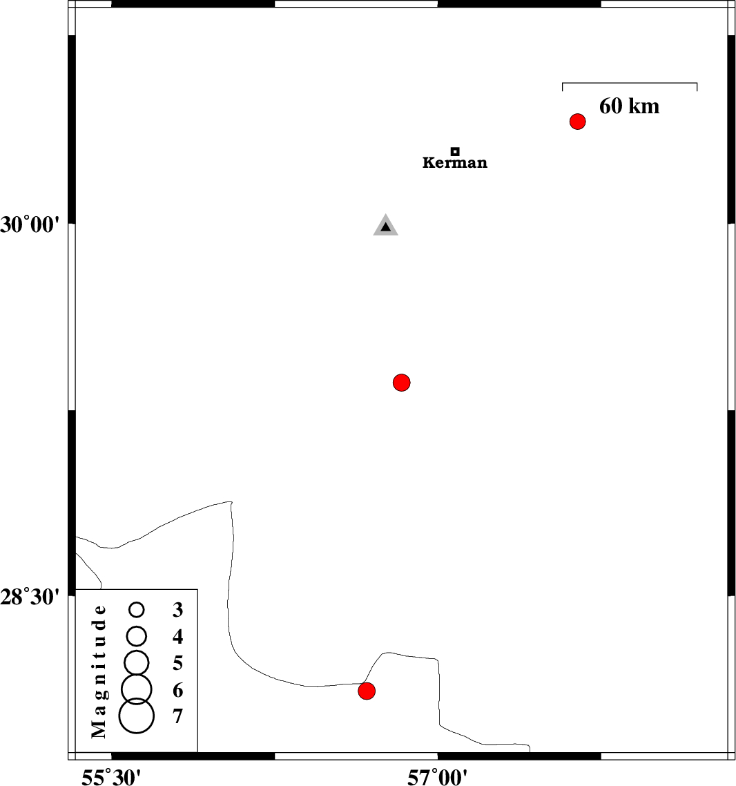 | 2023/02/23 | 10:54:02.5 | 14:24:02.5 | 30.407 | 57.643 | 12 | ML3.2 | Kerman Province, 56 km North-East of Kerman |